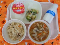 群馬県のソウルフードであるみそパンです。みそパンのみそだれは味噌、砂糖、みりん、黒糖をまぜて作っています。これを食パンにつけてオーブンで焼いています。甘じょっぱい味がおいしいみそパンです。今日で1学期最後の給食だったので、明日からはしばらく給食作りはお休みです。食器をきれいにみがいたり、普段なかなかできないようなお掃除をしたり、試作をしたりします。また2学期からおいしい給食を提供できるよう頑張ります。