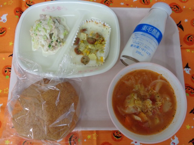 バンズパン 牛乳 手作りポテトグラタン ツナサラダ トマトチキンスープ