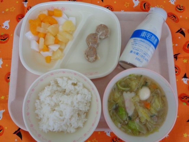ごはん 牛乳 焼きしゅうまい 杏仁フルーツ 八宝菜