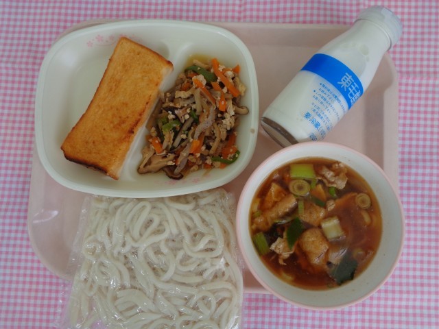 うどん 牛乳 みそパン 上州きんぴら うどん汁