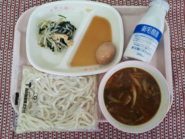 うどん 牛乳 (小中)煮卵 ほうれん草と油揚げのおひたし カレーうどん汁