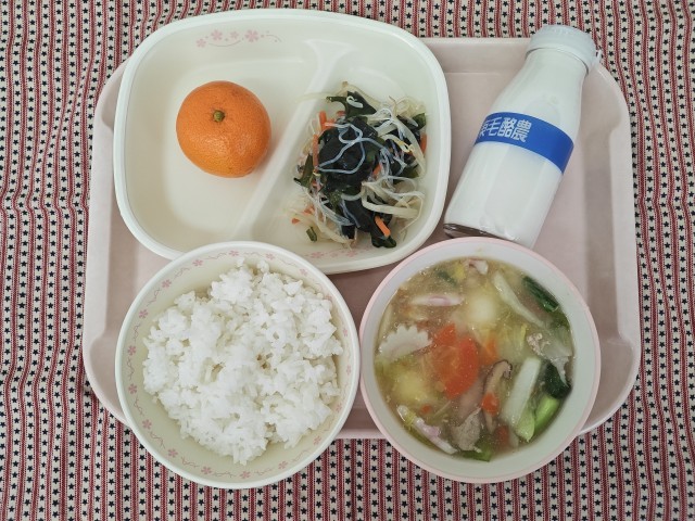 ごはん 牛乳 八宝菜 春雨中華サラダ みかん