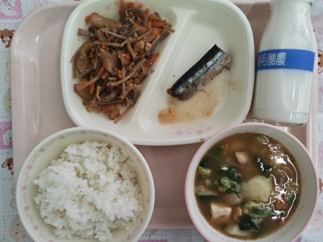ごはん 牛乳 さんまの土佐煮 きんぴら 豆腐入り雑煮