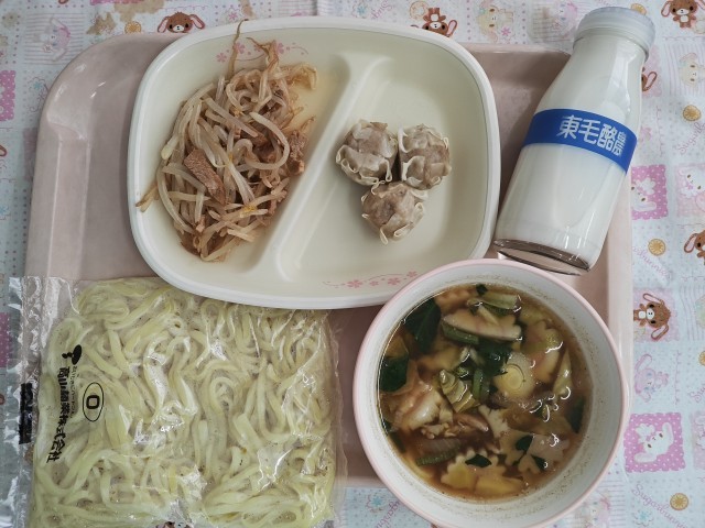ラーメン 牛乳 上州しゅうまい チャーシューともやしのにんにく炒め しょうゆラーメンスープ