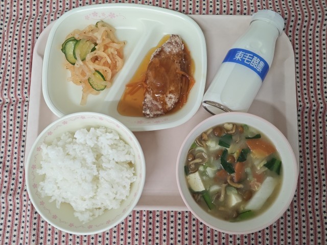 ごはん 牛乳 白身魚の野菜あんかけ きゅうりとだいこんのキムチ和え なめこ汁