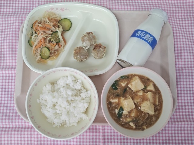 ごはん  牛乳  焼きしゅうまい  春雨中華サラダ  麻婆豆腐