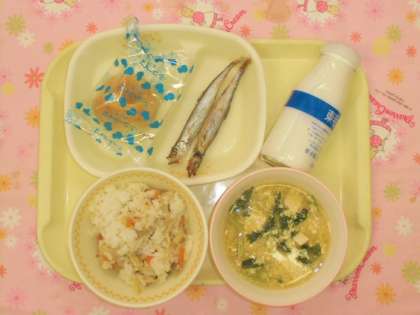 セルフまぜごはん 牛乳 焼ししゃも かきたま汁 シューアイス