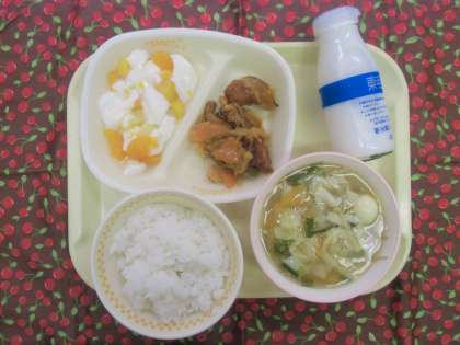 献 立 ごはん 牛乳 酢豚 フルーツ杏仁