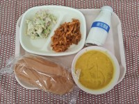 今日は冬至です。給食ではかぼちゃの入ったおっきりこみと、高知県産柚果汁をたっぷり使ったおろしソースをかけたとうふハンバーグが出ています。おっきりこみは群馬県の郷土料理で地域によってしょうゆ味・みそ味・混合などがあるようです。時期にとれる野菜をいろいろ入れて食べることで栄養満点の料理になります。給食でも玉村産の大根とねぎを使いました。体が温まるおいしい汁物です。
