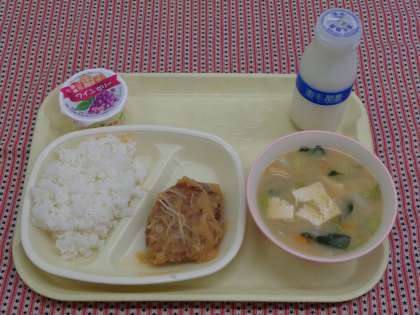 ごはん 牛乳 ハンバーグ和風ソース 生揚げのみそ汁 ワインゼリー(※アセロラゼリーから変更になりました)
