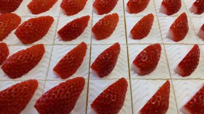 小学6年生の卒業、在校生の進級のお祝いも兼ねて玉村産のいちごを使ったショートケーキを作ります。本日納品になったいちごと生産者さんをご紹介します。